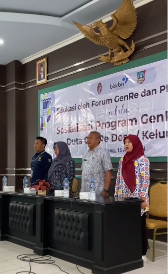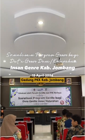 Edukasi oleh Forum GenRe dan PIK Remaja Melalui Sosialisasi Program Genre bagi Duta Genre Desa/Kelurahan Insan Genre Kab. Jombang Pada tanggal 18 April 2024 di Gedung PKK Kab. Jombang